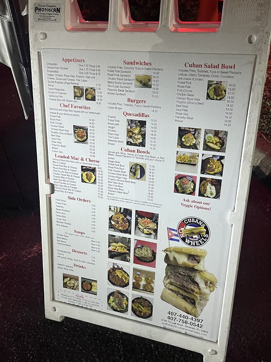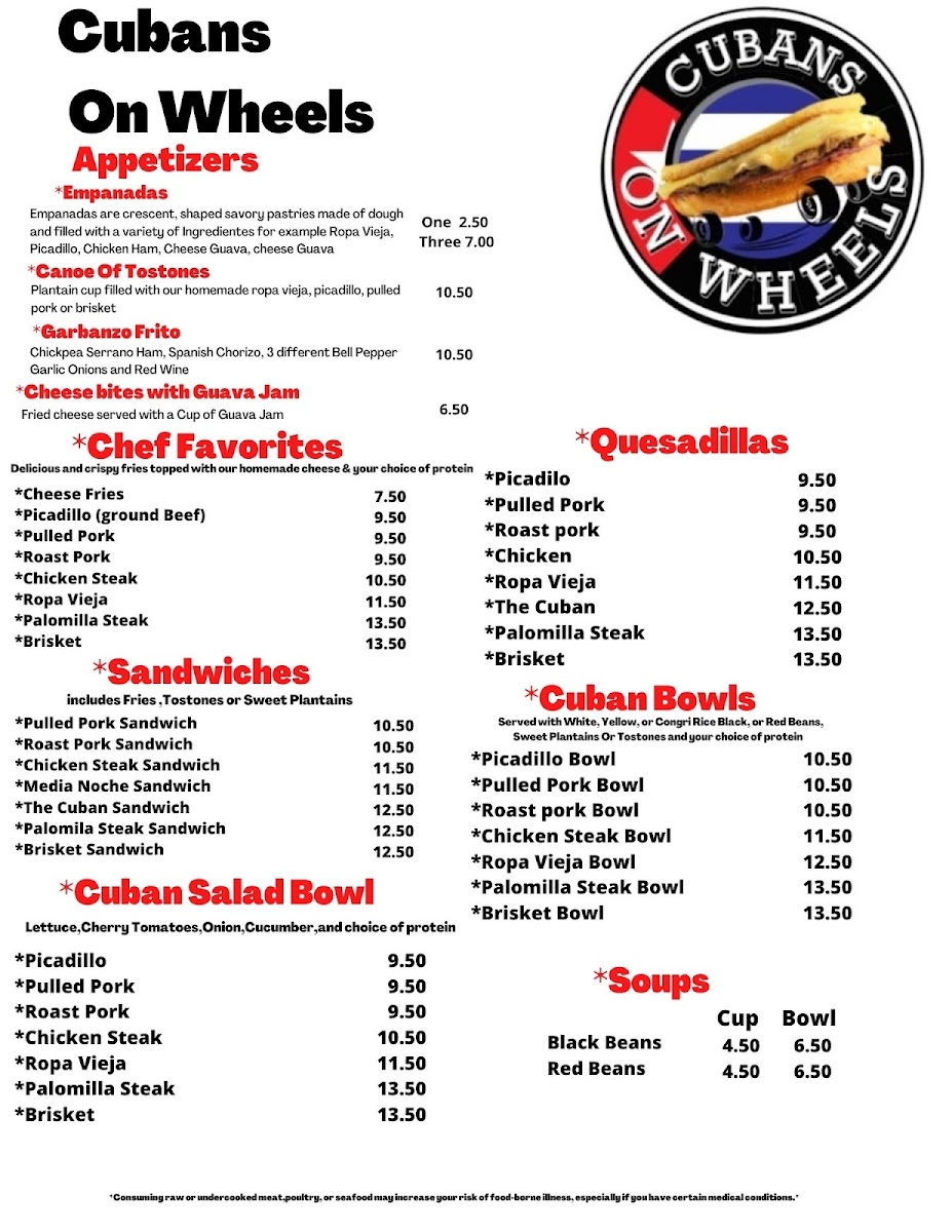 Welcome to Cubans on Wheels, an authentic culinary gem nestled near the bustling Orlando airport. This vibrant food truck offers a diverse menu that brings the rich flavors of Cuban cuisine right to your plate. Each dish is prepared with care, showcasing a variety of options, from the beloved Cuban sandwiches to satisfying salad bowls topped with mouthwatering ingredients like ropa vieja and abuelita's roasted pork.
